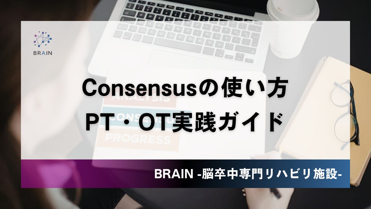 今回は、Consensusの基本操作(4ステップ)から、Consensus Meter・Pro Analysis・Study Snapshotsの3機能の使い分け、強みと限界、Elicit・PubMedとの役割分担まで、PT・OTが今日から使える形で解説します。
